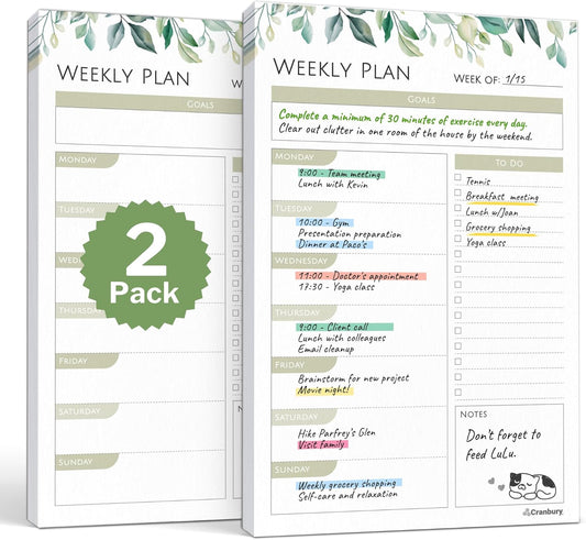 Daily Planner Notepad 2-Pack (5.5X8.5), 54 Tear-Off Pages, Undated Daily to Do List Planner Pad, Personal Planner, Time Block Planner, with Daily Scheduler, Priorities, Notes